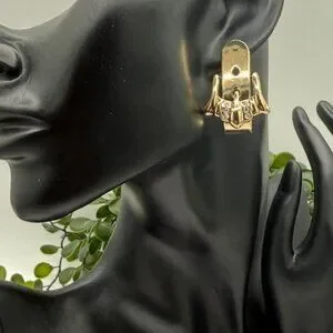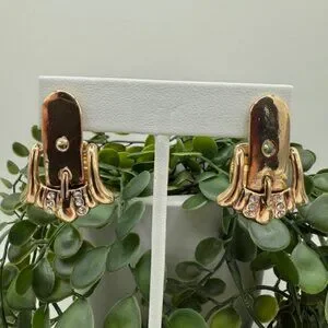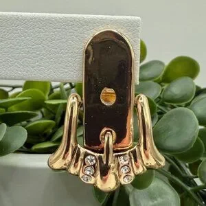 Anthropologie Gold Tone Buckle Earrings with Rhinestone Accents