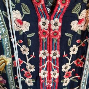 Johnny Was TALON Navy Floral Embroidered Tassel Blouse Size L