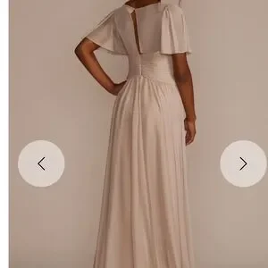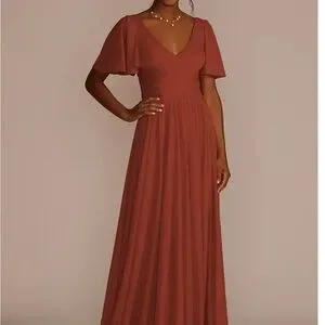 This dress is from David’s bridal in the color cinnamon. It has never been worn.
