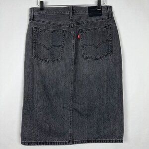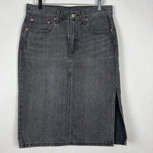 Levi's Skirt Women's Size 30 Black Wash Rigid Denim Side Slit Jean Midi Classic