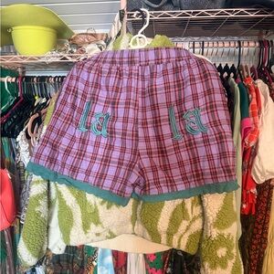 Chic purple plaid shorts with a high waist. Perfect for a stylish look.