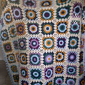 Boho Mardi Gras Crochet Granny Square Throw Blanket 66" x 58"