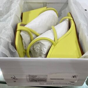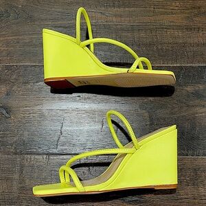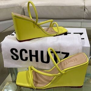 NIB SCHUTZ chartreuse LEATHER strappy wedge sandals lime apple zesty yellow 6.5