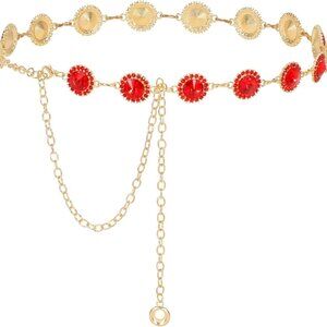 Women Concho Chain Belt Metal Link Western Cowgirl Turquoise Chain Belt for Dres