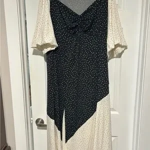 Torrid Black and Cream Asymmetrical Polka Dot Dress