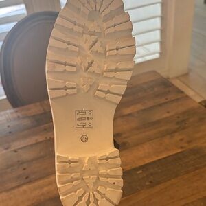 Adorable pink and black ankle boots with white rubber sole’s. Never worn. There are some marks on the white rubber sole’s as that’s how I bought them, but should clean up with a magic eraser.