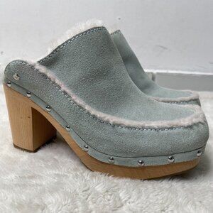 UGG #1112427 Women's Light Blue Aubriana Fur Loafer Heeled Clogs Shoes Size 10