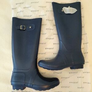 BAMBOO Women's Navy Blue Padinton Knee High Tall Rain Boots NEW NWOT
