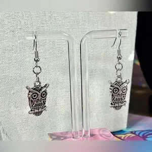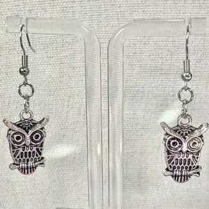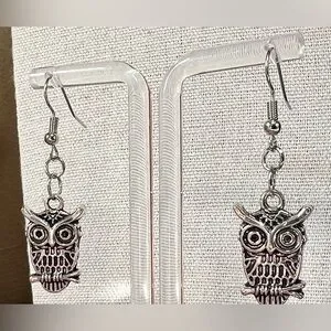 Dark silver tone owl earrings