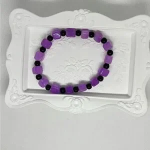 I was inspired to make this bracelet from square 10mm Shallow Amethyst beads and round 6mm black obsidian beads for a specific form of protection. Obsidian is a major protector stone and amethyst is known as the stone of sobriety. This bracelet is for anyone in recovery- wear it to help you take it one day at a time. I’m proud of everyone who’s on a recovery journey!
