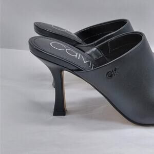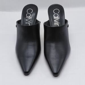 Calvin Klein Odina Dress Mules Women's Size 6M Black Faux Leather Pointed Toe Slip On High Heels Shoes Western Whimsigoth Witchy Work Office School Party Wedding Special Occasion