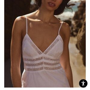 Chic white midi dress with delicate straps. Ideal for warm days.