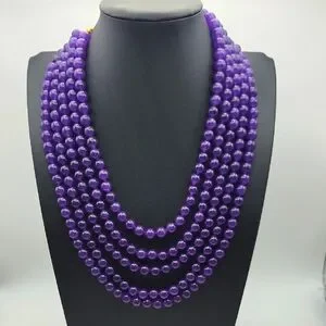 Add a touch of elegance with this stunning purple beaded necklace. Perfect for any occasion.