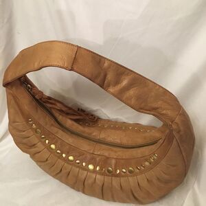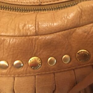 Elliot Lucca tan studded pleated leather hobo bag with tassel