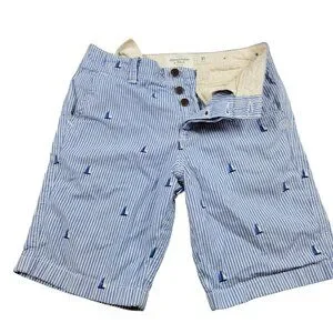 Abercrombie & Fitch Shorts Mens 31 Blue Stripe Sail Boat Chino Preppy Button Fly