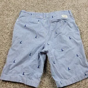 Abercrombie & Fitch Shorts Mens 31 Blue Striped Sail Boats Chino Preppy. In good condition with a little browning in some areas