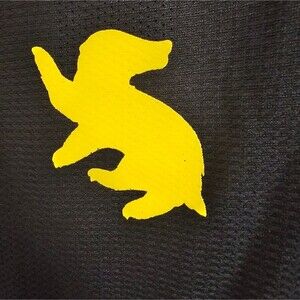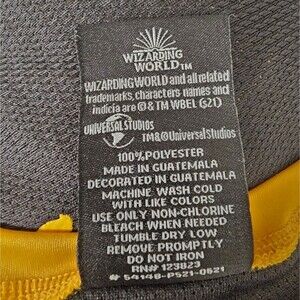 Features split-color design with “Hufflepuff Hogwarts” vertical print and house mascot graphic