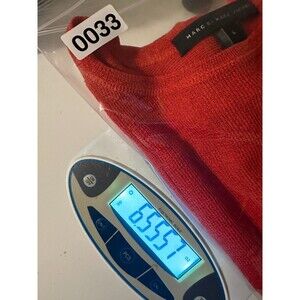 Marc by Marc Jacobs jewel neck sweater with princess seams and long sleeves. Lightweight and somewhat sheer knit of silk and nylon, has a silky feel and alot of stretch. Color is Salsa Red. New without tags, in like new condition and showing no signs of wear or defects. Size large.