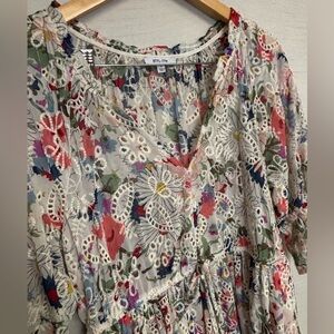 BTFL-Life | VGUC Floral Lace Mini Dress Top Boho Eyelets, Size Large