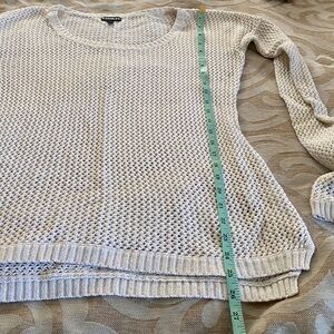 Chic ivory sweater with scoop neck. Lightweight knit design. Ideal for layering.