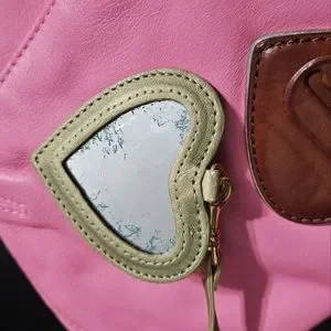 • Features: Gold chain detail, heart accents, structured design