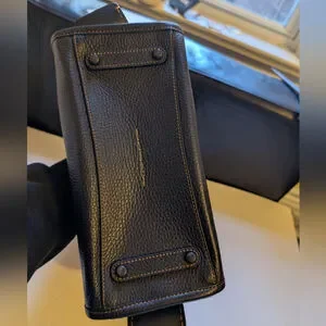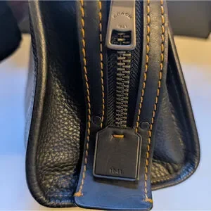 Elegant black leather satchel. Features sturdy handles and sleek design. Perfect for everyday use. Does not come with strap or dust bag. If I can find a dust bag from another one of my Coach bags I will include it. I only used a couple times. I liked this bag but I am more of a crossbody bag girl.