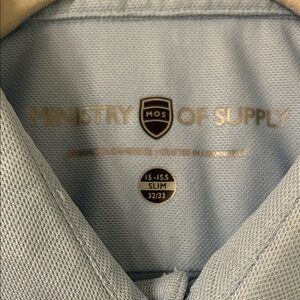 Stylish light blue dress shirt. Ideal for business or casual wear. Comfortable and modern design. Breathable wrinkle free fabric. Made in LA. Slim fit. Size 15-15.5x 32/33