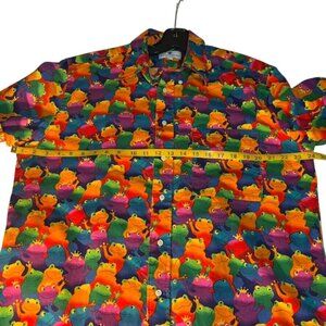 Frog Print Short-Sleeve Button-Up Shirt By English Sports Shop L 100% Cotton Ber