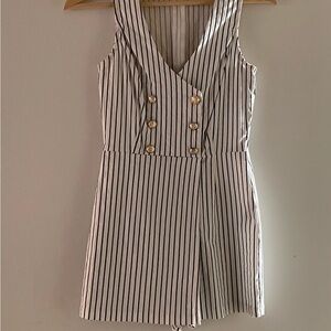 Fashion Nova Black and White Striped Jumper with Gold Buttons