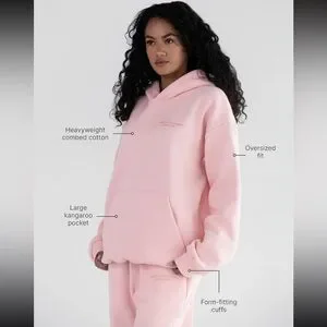 Stay cozy in this oversized pink hoodie. Made from heavyweight combed cotton, it features a large kangaroo pocket and form-fitting cuffs for added comfort.