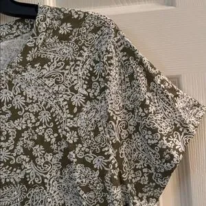 Sanctuary T Shirt. Short Sleeve. White/Green Paisley Design. Soft/Light Material Nice T Shirt! In Great Condition