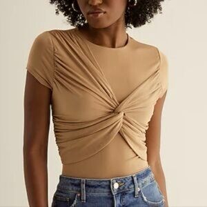SOLD: Express Tan Twist-Front Body Contouring Shirt NWT