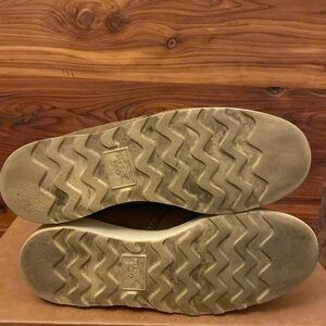 These beautiful boots are in excellent used condition, very clean, comfortable and free of odors. They are an olive/tan color depending on the lighting. I am narrowing down my collection. They are true to size and come in their original box.