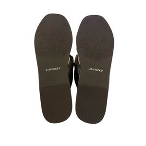 The Lisa Vicky Mentor-V Black Sheep Kappa Leather Open Toe Sandals in size 8M offer a stylish and comfortable option for women. With a slip-on closure and flat heel, these sandals are perfect for everyday wear. The black color and solid pattern add a versatile touch to any outfit. Made from high-quality leather, these sandals are durable and long-lasting. The open toe design and brand Lisa Vicky add a touch of elegance to these fashionable flats.