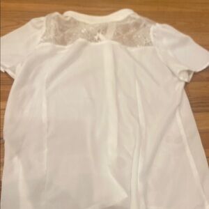 Elegant white blouse with lace detailing. Button-up front. Perfect for any occasion.