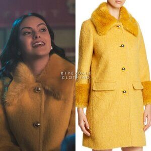 MUST HAVE! This strikingly beautiful, ultra-chic statement coat is from iconic Kate Spade, known for stunning, polished pieces. It's one of those timeless showstopper coats that createsย an instant drama and transforms any look. Bloggers' fav, a real investment statement piece!ย It was worn by Coralee Armstrong (Alyssa Milano) on Insatiable, Veronica Lodge on Riverdale, Sonequa Martin-Green, and many more celebrities. It comes in vibrant marigold yellow, accented by beautiful gold buttons. Crafted from an amazing quality wool blend with a beautiful, fluffy brushed texture that looks and feels so lux! Desinged with a relaxed sihluettegorgeous oversized faux-fur spread collar, long sleeves with faux-fur cuffs, front button closure, waist flap pockets, and smooth satin lining. It's very comfy, lightweight, yet warm, and surprisingly versatile. It will look equally fabulous styled with your favorite leather pants/ distressed denim skinnies, as it is with an elegant outfit. Size 2 US.The approx measurements flat are: Pit to pit 20", Shoulder to shoulder 15.5", Waist: 20.25", Length: 34.75", Sleeve: 22". Material: Acrylic/polyester/wool; faux fur: acrylic; back: polyester; lining: polyester/elastane. MSRP $ 1,200 + tax. NWT from a clean, smoke-free home. ๐Please, no low-ball offers for this rare stunner! ๐