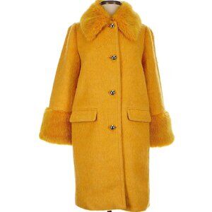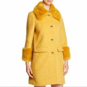 ๐ฅ๐SHOWSTOPPER!๐๐ฅKATE SPADE YELLOW FLUFFY WOOL COAT W/ FUR COLLAR & CUFFS