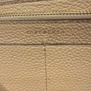 Tory Burch Beige Soft Pebbled Leather Wallet with Gold Logo