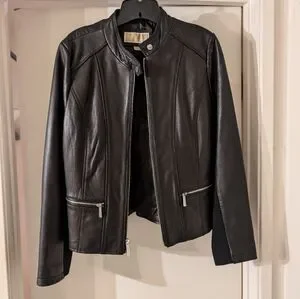 Michael Kors black leather jacket women size large