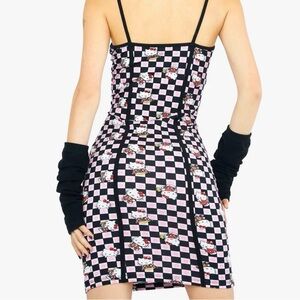 Chic mini dress with a playful checkered pattern. Features iconic Sanrio hello kitty dress.