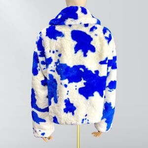 NWT Girlfriend Material Jax Faux Fur Blue Cow Print Jacket Coat