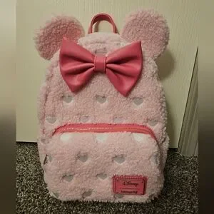 NWT Minnie Mouse Exclusive Hearts Sherpa Mini Backpack