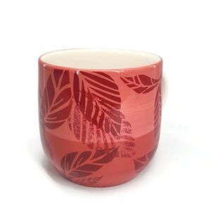 Starbucks Seasoning Scents 2011 White & Cranberry Red Pink Hand Painted Leaf Print Stoneware Coffee Tea Hot Chocolate Mug Cup