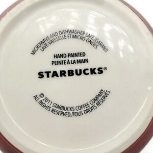 Starbucks 2011 Seasoning Scents White & Cranberry Hand Painted Leaf Print Mug