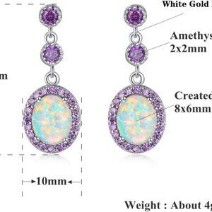 Feature: Opal stud earrings earrings are suitable for almost all of sensitive ears, the main stone of the gemstone stud earrings is created purple fire opal size: 8 x 6 mm; Amethyst 2 mm x 2 pcs . Earrings length: 7/8". Earrings width:10 mm