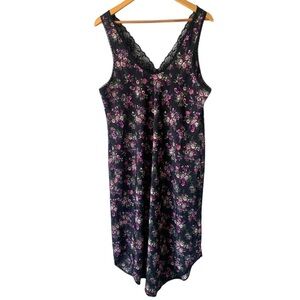 French Maid Vintage Black Floral Slip Dress Women's Large Sleeveless Lace