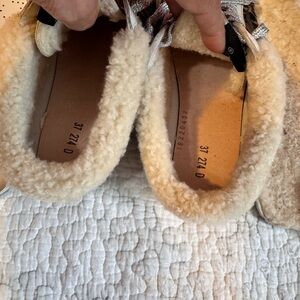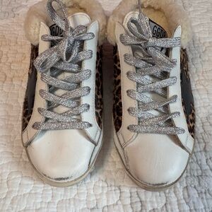 Stylish and comfortable, these shoes feature a chic white and leopard print design. Perfect for everyday wear. They come with the padding for the shoes. New and in great condition!