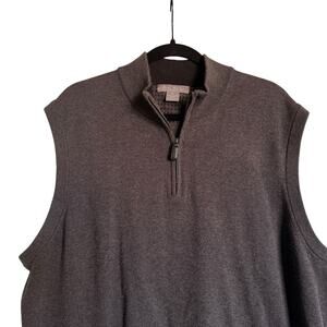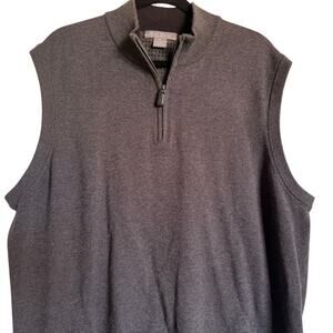 Cremieux 1/4 zip sweater vest - perfect for the office, the golf course, or your next cruise. This vest is in good preowned condition with no rips, holes or stains. Please see images for details and approximate measurments.
