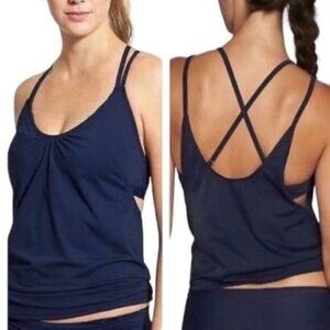 Athleta Seascape Tankini Swim Tank UPF 50+ Blue Adjustable Straps Bra Underwire
