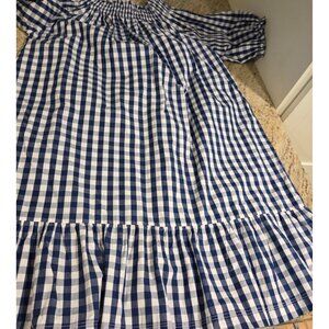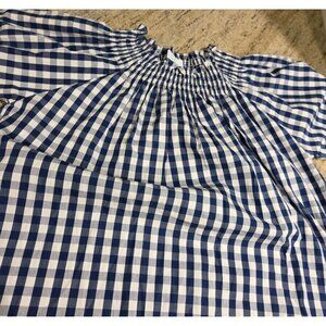 Lake Pajamas Size S Blue Gingham Check Cotton Smocked MIDI Dress Peplum Hem